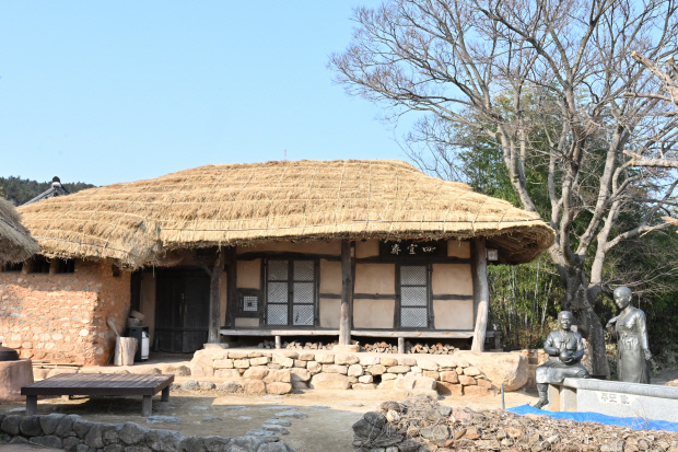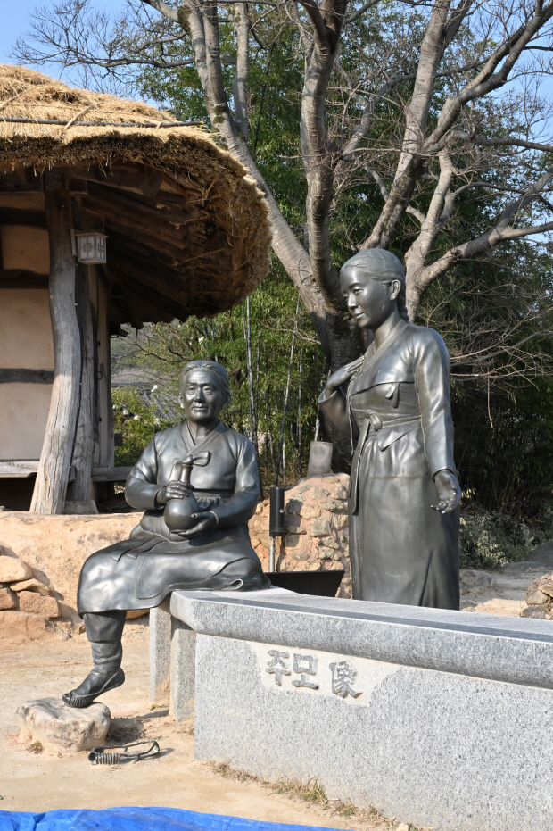 ![]() 사의재 초가집 마당에 세워진 주막 할머니 동상. |