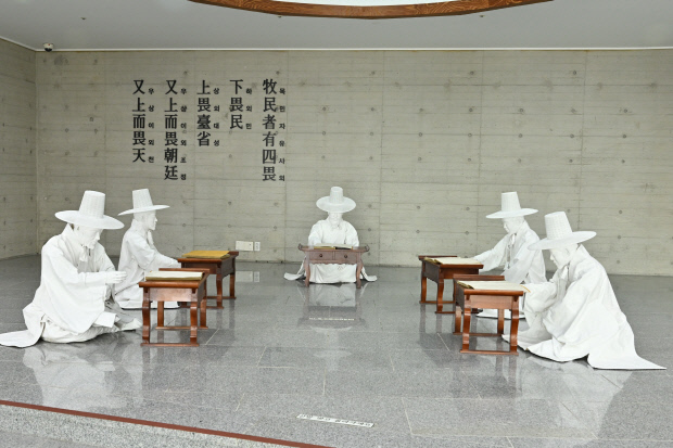 ![]() 다산박물관 로비. 다산이 제자들을 가르치던 모습이 전시돼 있다. |