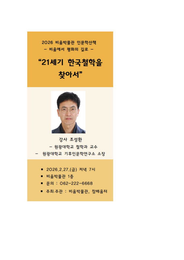 ![]() 비움박물관 인문학 산책 2월 강연 포스터. |