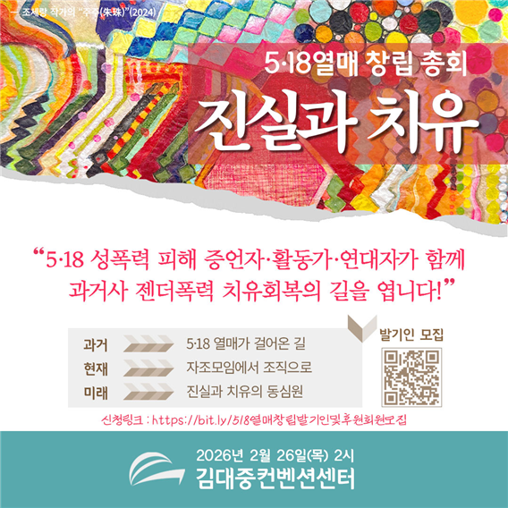 지난해 9월 자조모임으로 출범해 5·18 성폭력 피해자와 가족, 연대자들이 함께하는 활동을 펼쳐왔다. 단체는 과거 국가폭력에 따른 젠더폭력의 진실 규명과 치유·회복을 목표로 삼겠다는 방침이다.
