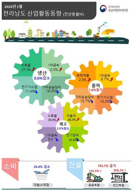 2026년 1월 전남도 산업활동동향<호남지방데이터청 제공>