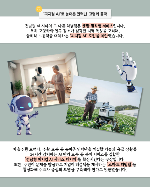 또 농어촌 인력난과 고령화 문제 해결을 위해 자율주행 농기계, 돌봄 로봇 등 ‘피지컬 AI’ 기반 생활밀착형 서비스 확대도 필요하다고 강조했다.