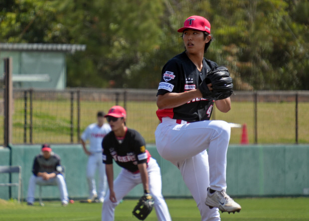 KIA 타이거즈 좌완 이의리는 6일 일본 오키나와 킨 구장에서 열린 LG 트윈스와의 연습경기에 선발로 등판했다. 지난 1일 한화이글스와의 연습경기에 이어 스프링캠프 두 번째이자 마지막 실전이었다.