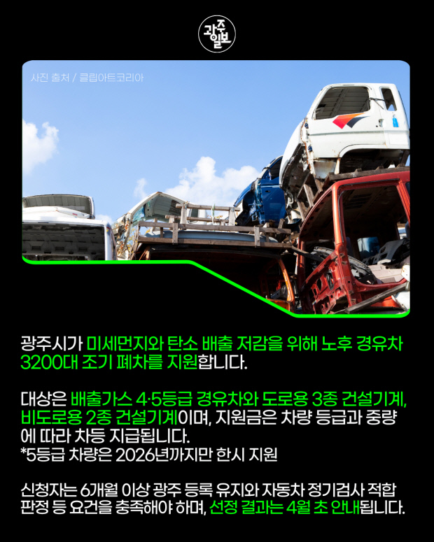 [오늘의말말말] “노후 경유차 줄이고 공기질은 올리고”…광주시 9일부터 조기 폐차 접수